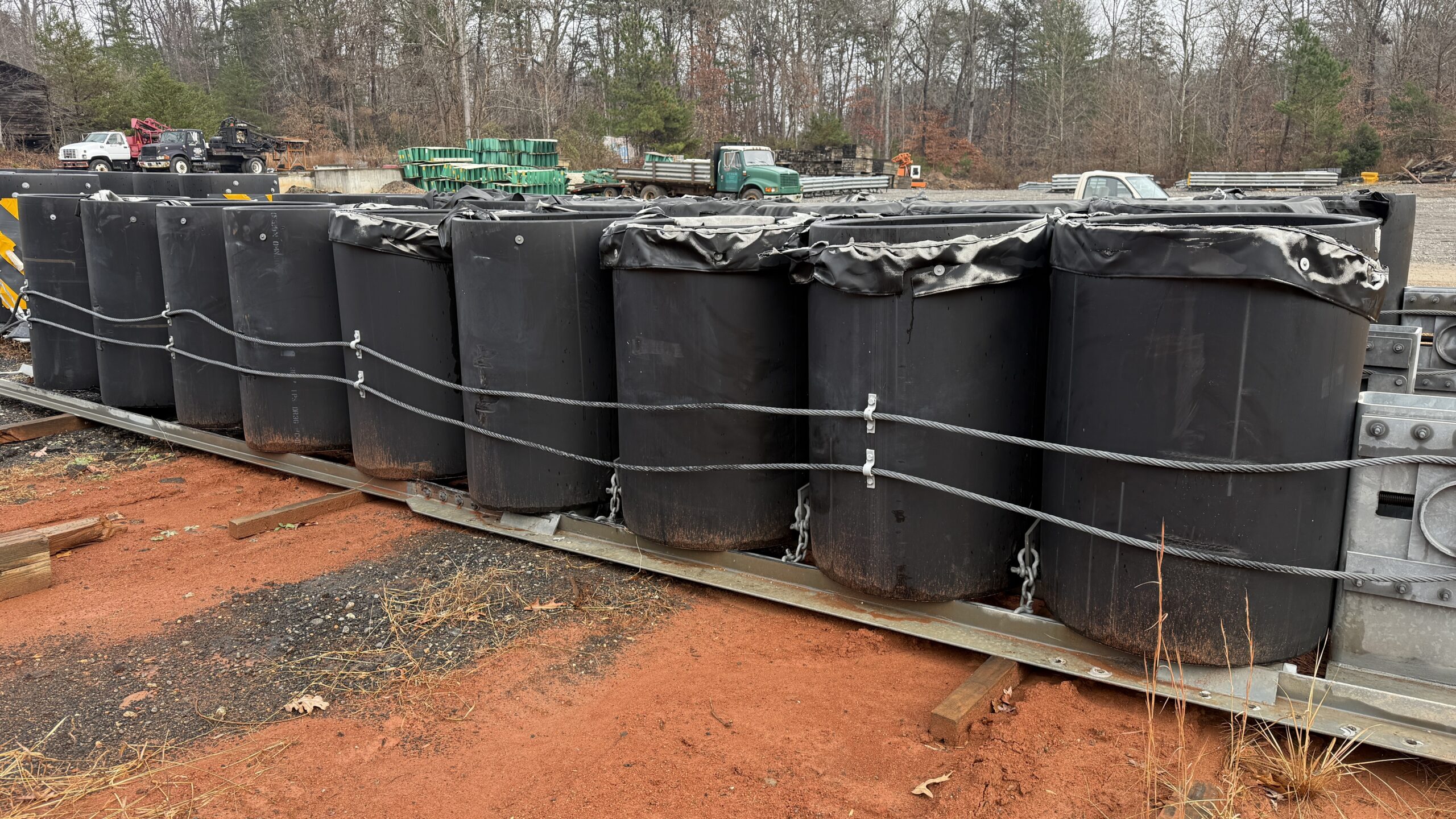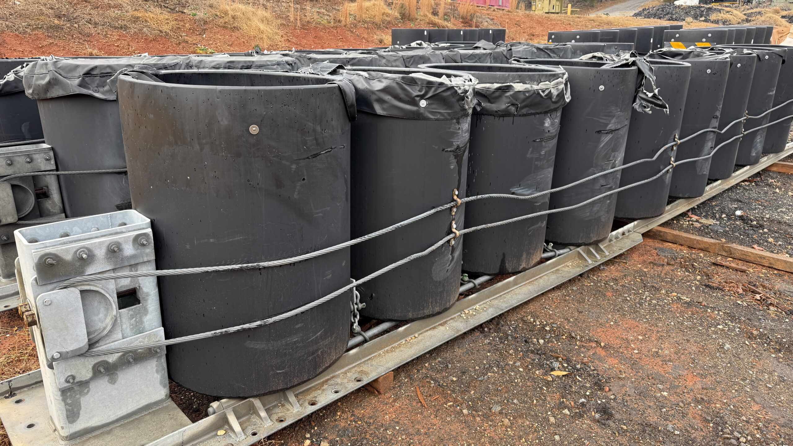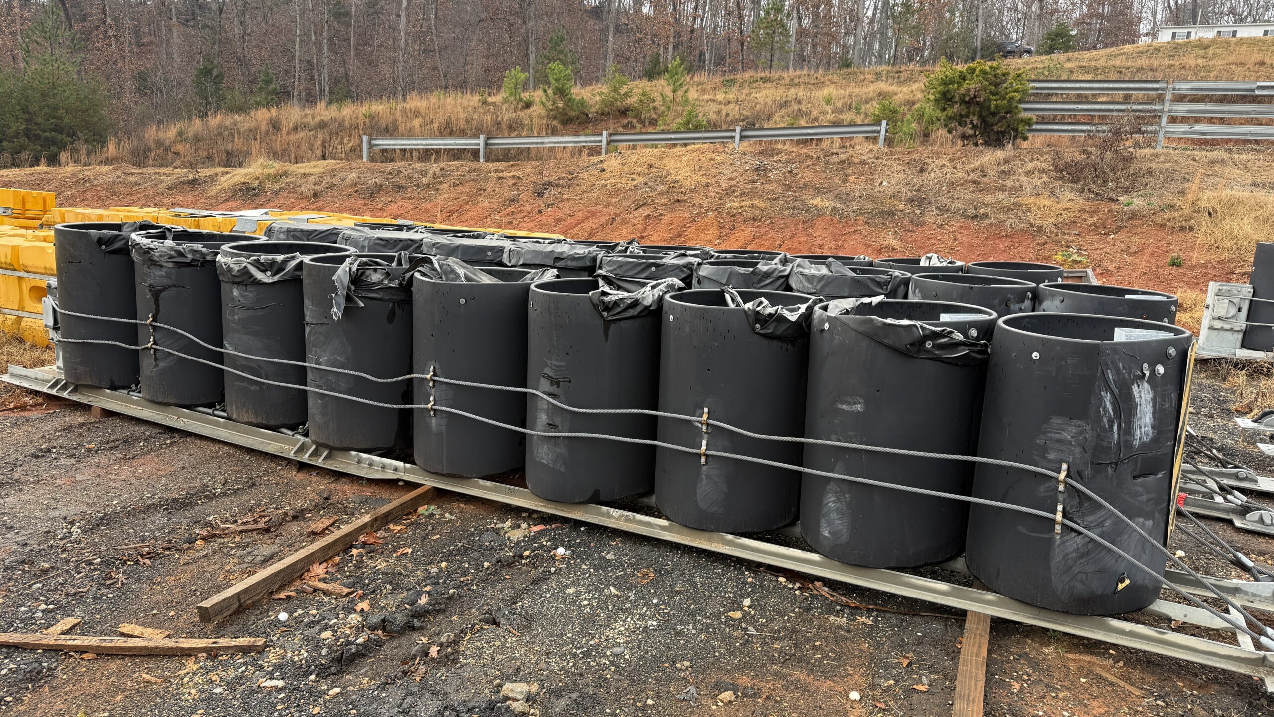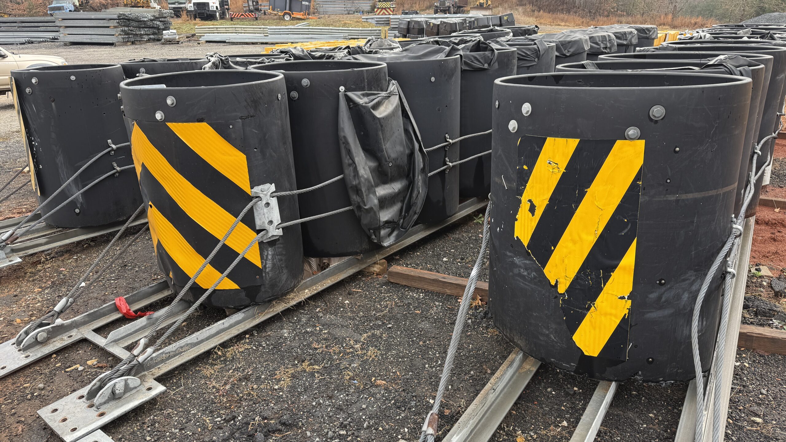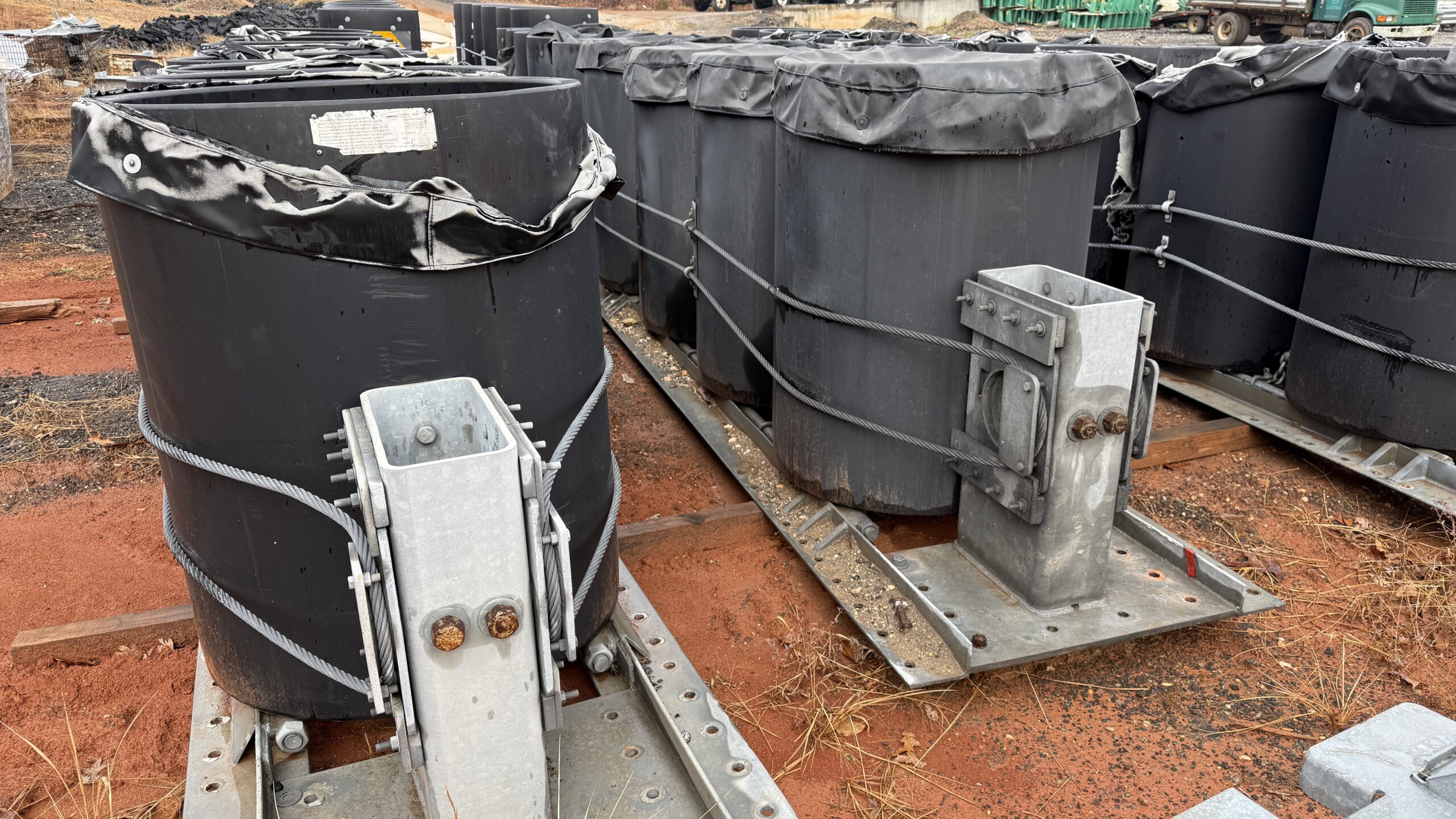 Meeting NCHRP 350, these are redirective, non-gating crash cushions. Employing cylinders made from high molecular weight, high-density polyethylene (HMW/HDPE) plastic that are arranged to shield rigid hazards with three system widths of 1.525 m (60”), 2.440 m (96”) and 2.050 m (120”). When impacted within the design capacity specified in NCHRP 350, the cylinders typically regain up to 90% of their original shape and capacity without maintenance or repair of major components.